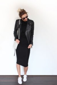 - Egyszínű, térdig érő, a szoknya résznél egyenes, vagy kissé lefelé bővülő megoldások jól állnak, ha a ruha anyaga lágy és rugalmas.