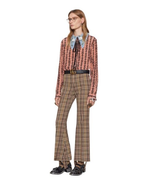 A fordított háromszög alkatnak igazán a stílusa a széles szár, még ebben a kockásban is érdemes bepróbálni!