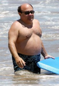 Ennek a folyamatnak és a fent leírt típusoknak a példája Bud Spencer és Terence Hill. Mindketten téglalap/trapéz alkatok, Bud Spencer magas és erős alkat, Terence Hill pedig karcsú és alacsonyabb. Mindketten idővel a pocak felső részére híztak, így ovális alkatuk lett.
