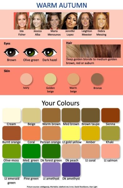 Jól áll nekik minden, ami mély aranyló, ragyogó, ami földszín, avarszín. Amelyek a többi típust öregítik a tompa, fakó, fáradt színek őket sugárzó melegséggel töltik el.